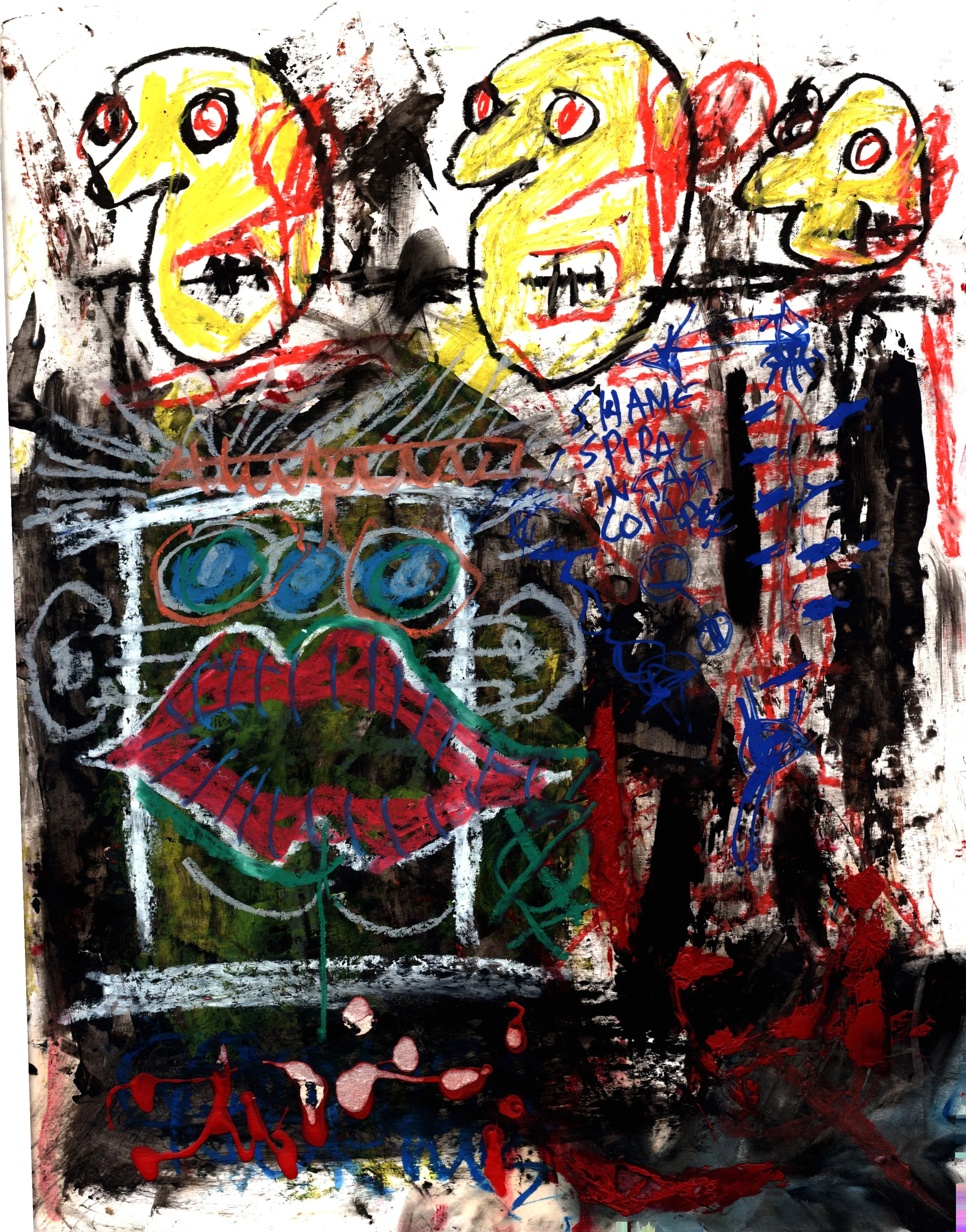 ”You Should be Shamed” Oil stick, acrylics, digital collage
